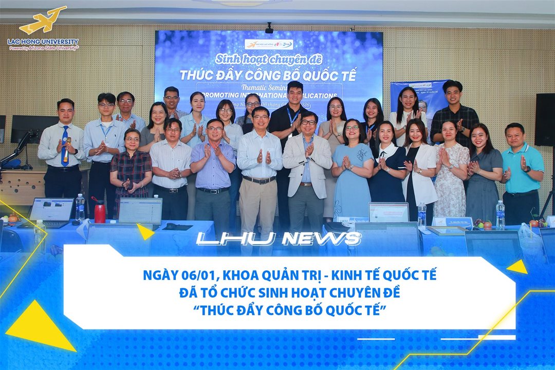 Sáng ngày 06/01/2026, Khoa Quản trị - Kinh tế quốc tế (Trường Đại học Lạc Hồng) đã tổ chức thành công chuyên đề “Thúc đẩy công bố quốc tế” tại phòng B203. Sự kiện không chỉ là buổi sinh hoạt học thuật thông thường mà còn mang đến những giải pháp cụ thể, giúp tháo gỡ những rào cản trong nghiên cứu khoa học mà các giảng viên đang gặp phải.