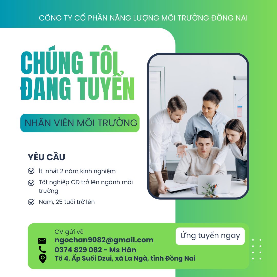 Công ty CP Năng Lượng Môi Trường Đồng Nai tuyển dụng nhân viên môi trường