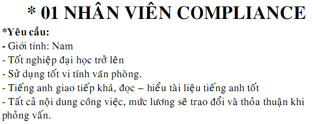 Công ty TNHH NamYang Sông Mây cần tuyển NV Compliance