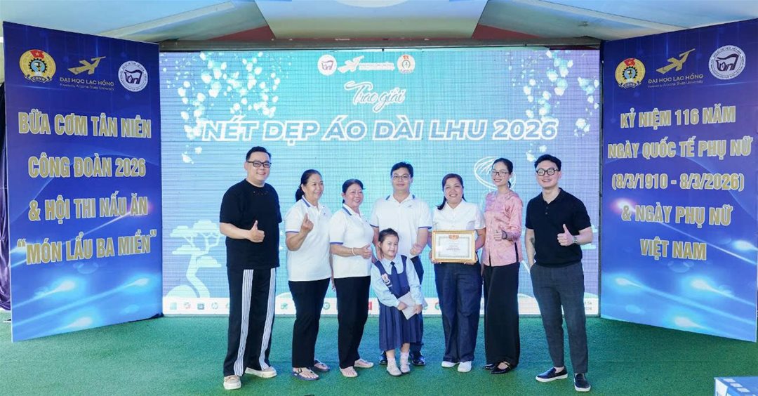 Sáng ngày 07/03/2026 tại Hội quán Trấn Biên, Công đoàn Trường Đại học Lạc Hồng phối hợp cùng Hội Nữ trí thức đã tổ chức Lễ trao giải Cuộc thi ảnh “Nét đẹp Áo dài LHU năm 2026”. Sự kiện là đóa hoa tươi thắm chào mừng 116 năm Ngày Quốc tế Phụ nữ (08/3) và Ngày Quốc tế Hạnh phúc.