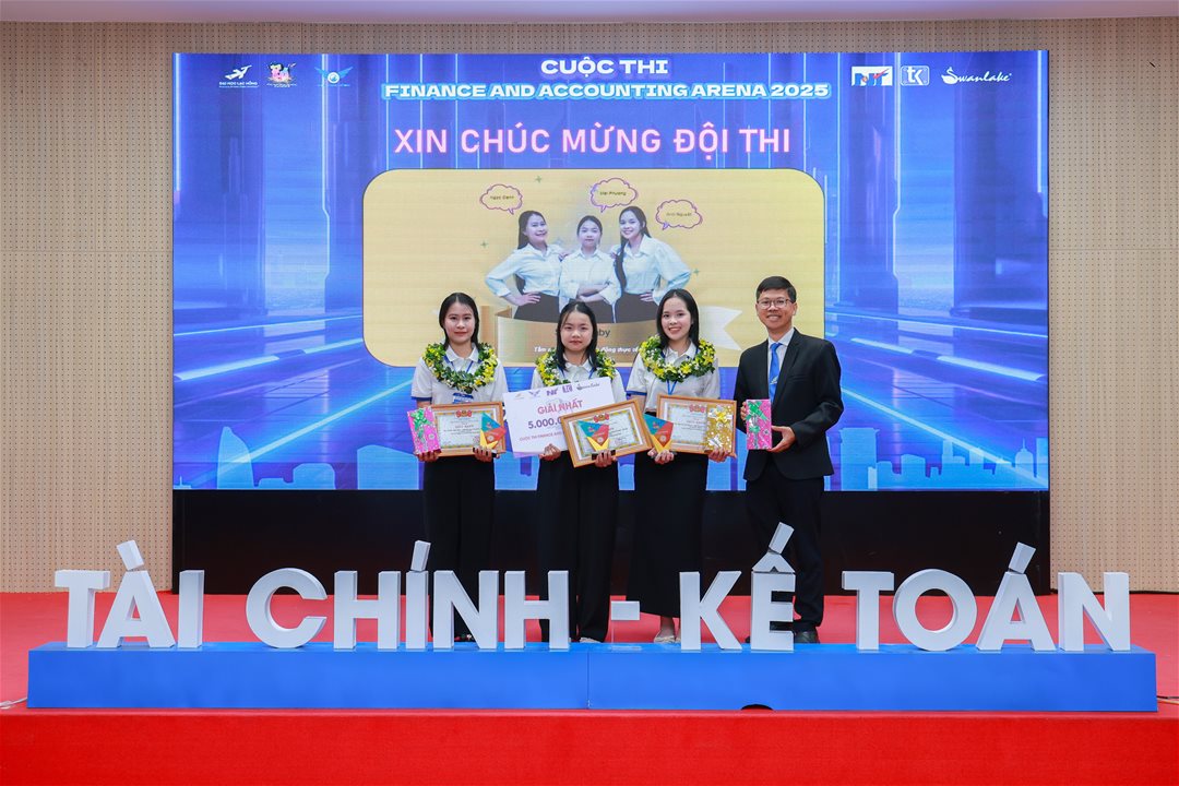 On the afternoon of December 4, 2025, at Hall A301, Lac Hong University, the Faculty of Finance and Accounting successfully hosted the Final Round of the “Finance & Accounting Arena 2025” (FA Arena 2025). The event marked the conclusion of an exciting, intellectually rich, and highly competitive season, showcasing the academic strengths of students in the economic disciplines—particularly Accounting and Finance–Banking.