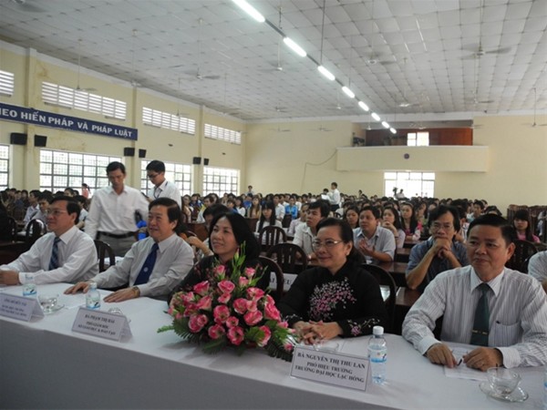 At the ceremony, Nguyen Van Ky’s wife Le Thi Tru had a talk with students of Lac Hong and Dong Nai. She reviewed glorious traditions of our ancestors for students and reminded them of living well to be able to contribute to the development of the country.
