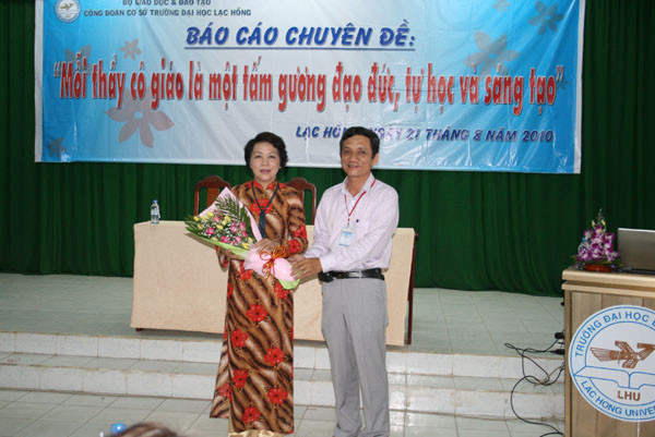 Morning August 21st, 2010 , Commission of Women, Union of Lac Hong University held a seminar entitled "Each teacher is a moral, self-taught and creative example. " reported by Vu Thi Thanh Binh, PhD - Former Vice Chairman of Vietnam Education Union.