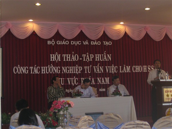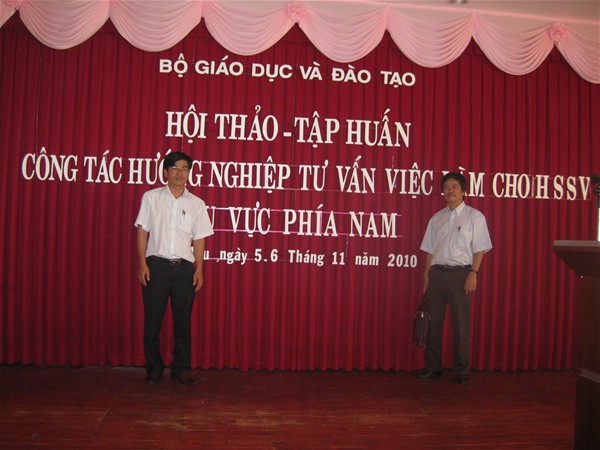 Recently, the two day seminar of November 5th  and 6th , 2010 took place in Vung Tau with the theme "Training on vocational guidance, employment counseling for students in the Southern region”  held by the Ministry of Education and Training with the participation of Dr. Dang Duy So (Director), Tran Dung, M.A (Vice Director) of Center for International Relations Overseas Study and Employment - Lac Hong University.
