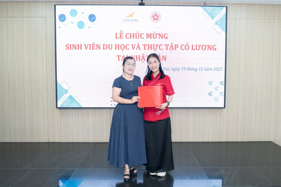 Sáng ngày 19/12/2025, tại phòng B203 – Cơ sở 1, Trường Đại học Lạc Hồng, Nhà trường đã long trọng tổ chức Lễ chúc mừng sinh viên đi du học và thực tập có lương tại Nhật Bản. Buổi lễ là hoạt động ý nghĩa nhằm ghi nhận, biểu dương và động viên những nỗ lực đáng tự hào của sinh viên Ngành Nhật Bản học trong quá trình học tập, rèn luyện và từng bước hội nhập vào môi trường giáo dục, làm việc quốc tế.