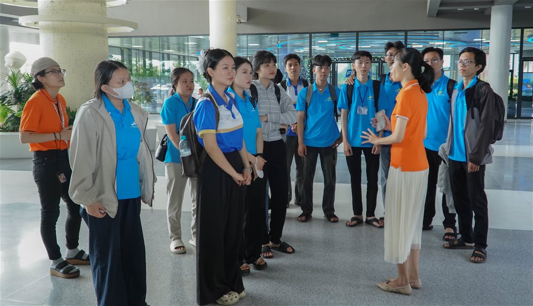 Students were guided through open workspaces, creative meeting rooms, entertainment areas, project operation zones, and specialized laboratory models.